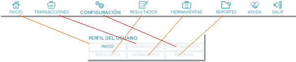 La sección Perfil del usuario se encuentra dividida en 6 pestañas, las cuales coinciden con el Menú principal de CLC.