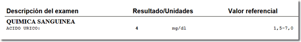 Utilizando el mismo ejemplo del ácido úrico quedaría de la siguiente manera: