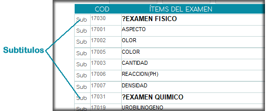 En algunos casos necesitamos que los reportes de resultados posean una agrupación determinada y ordenados de acuerdo a subtitulos que creemos. Un ejemplo típico podría ser el examen de orina