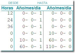 - Rango etario (edad del paciente) al cual aplicarán estos valores