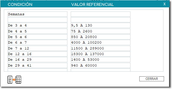 Podemos ver en la imagen que muestran los valores referenciales adecuados, de acuerdo a las semanas.