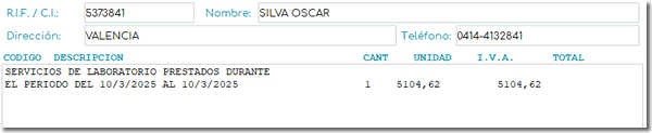 Esta opción recoge bajo el concepto: Servicios de laboratorio prestados para englobar allí todos los examenes contemplados en las órdenes que se estan facturando.