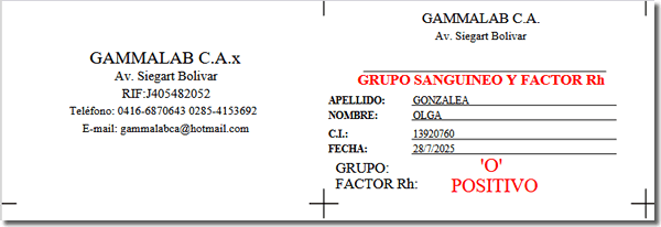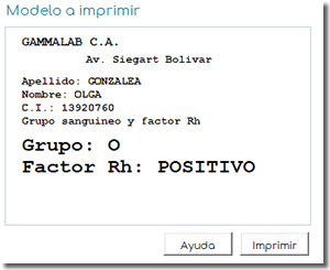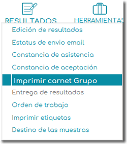 - Ingrese por el menú Resultados/Imprimir carnet de grupo sanguíneo