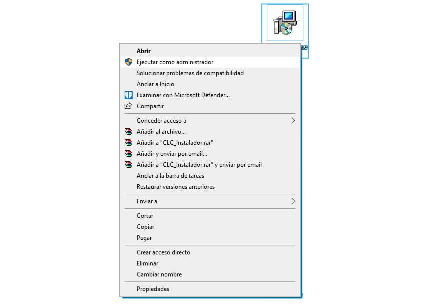 Utilizando el botón secundario del muouse, seleccione la opción Ejecutar como administrador