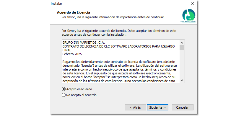 Presione el botón Siguiente para comenzar y complete la instalación de CLC Laboratorios.