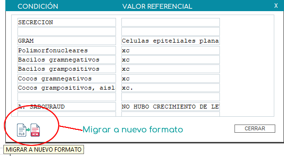 NOTA IMPORTANTE: No todos los exámenes configurados como Formato especial de resultados pueden ser migrados a través de esta herramienta de migración, para esos casos, siga el procedimiento manual que se indicó anteriomente.