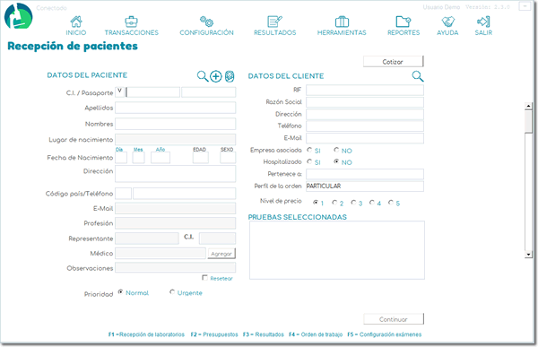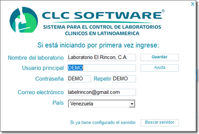 Una vez instalado CLC Laboratorios en su PC e iniciar por primera vez