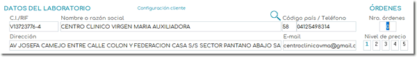 - Ingrese los datos del laboratorio, o cliente