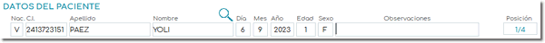 - Ingrese los datos del primer paciente