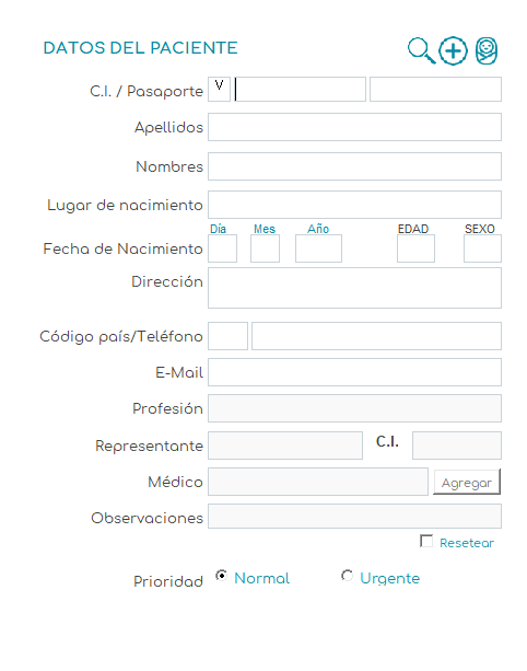 - Ingrese el número de cédula de identidad del mismo y presione Enter y el sistema cargará los datos del paciente.