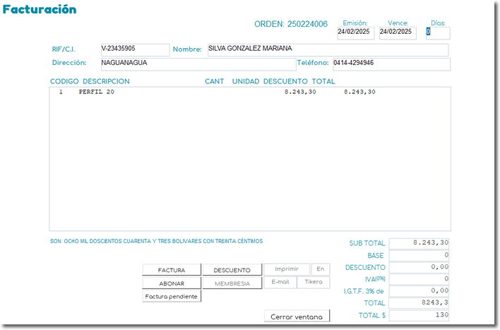 - Dejar la factura pendiente para ser emitida posteriormente junto a otras órdenes del mismo cliente