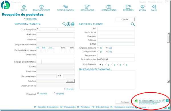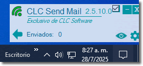 Al iniciar CLC Laboratorios en la PC principal de su laboratorio, SendMail se inicia de manera autónoma. Este plugin siempre estará ubicado en la esquina inferior derecha del monitor (sobre la fecha de la PC).